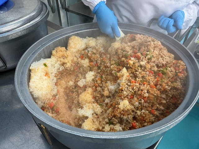 今日の給食は、ジャンバラヤ、牛乳、青のりポテト、キャベツスープ、くだもの(クレメンティン)です。