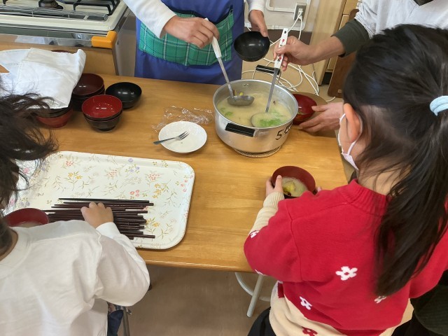 学校支援コーディネーターの皆様にご協力いただき、とっても美味しいお味噌汁に子どもたちの心もホカホカでした。