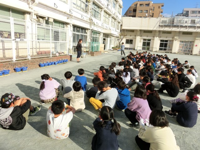 たてわり班のメンバーで声をかけ合い、一生懸命行いました。