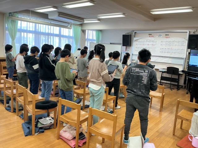 今日の音楽の授業では、楽曲の構成を考えながら合唱の練習を行いました。