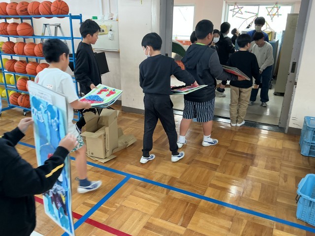 4・5年生が、展覧会の片付けを行いました。