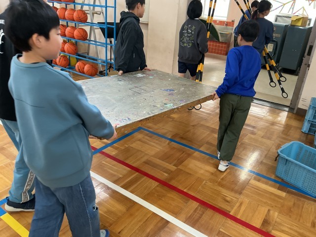 友だち同士で声を掛け合いながら、机や椅子、そして一人ひとりの思いが込められた絵画を、大切に丁寧に運ぶ姿がとても印象的でした。みんなで力を合わせて取り組むことで、無事に片付けを終えることができました。