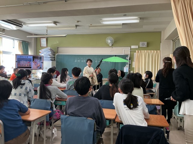 本日は、元八幡中学校教員であり現在日本舞踊家でもある藤間初紫乃先生とスポーツトレーナーで本校卒業生である中川修一さんをお迎えし、キャリア教育の学習を行いました。