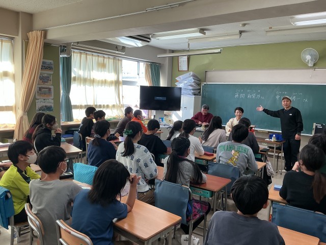 お二人は、元八幡中学校の担任の先生と教え子のご関係。感動の再会に私たちも立ち会えて、中学校に向けての夢や希望が膨らみました。