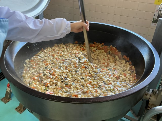 今日は世界の料理給食(中国)で家常豆腐丼にしました。