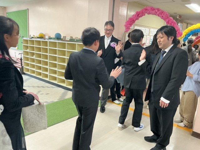 門出送りは5年生の花のアーチの中を通り抜けて行きました。