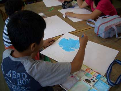 6年生は、図画工作の時間・・・“宇宙へ”厚紙の上に紙粘土で凹凸をつくり、その上に絵の具で色を塗ってました。どんな感じの宇宙を表現できるでしょうか。