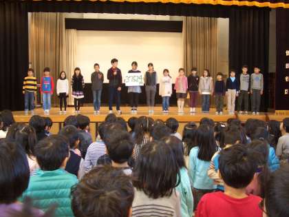 今日、2学期の終業式を迎えました。校長の話、児童代表の言葉(1年生)、表彰の後にユニセフ募金の報告を代表委員会の子どもたちがしました。
