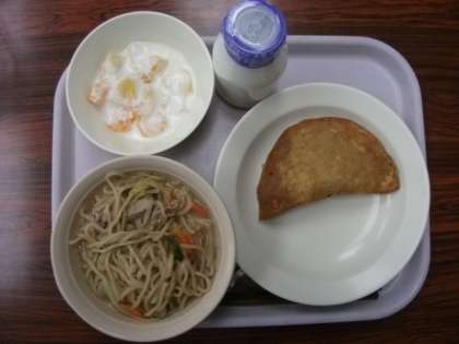 みそラーメン 牛乳 ジャンボギョーザ フルーツヨーグルト です。