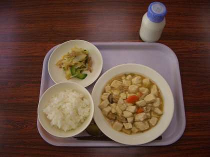ごはん 牛乳 じゃーじゃん豆腐 白菜の中華サラダ