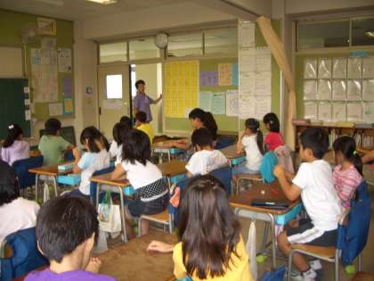 2年生は、「学級指導」下校時の校門の通り方について指導していました。これは、下校時に後ろから走ってきた子と接触して軽い打撲をしたことを生かした指導です。安全・安心指導を重視していることが伝わってきます。