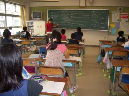 6年生は、「算数」少人数の時間で担任の先生の指導の場面です。学習していることは、“単位量あたりの大きさ”6年生の学習では、難しい学習です。画面は、授業の最後で、本時の確認をしているところです。