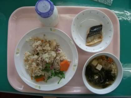 桜の花寿司 牛乳 すまし汁 焼き魚 です。