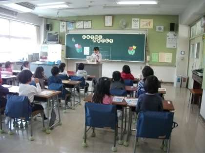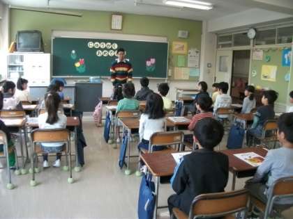 今日から1年生は一人でランドセルを背負っての登校です。教室では6年生が待っててくれます。