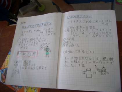 −トに自分の考えや家で取り組んでいることをまとめた後、たくさんの子どもたちが発