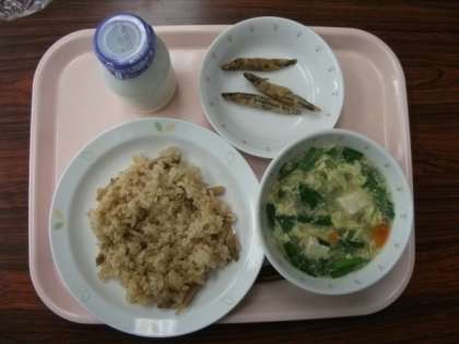 中華おこわ 牛乳 にらたまスープ きびなごの唐あげ です。