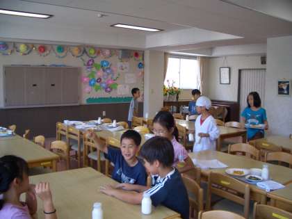 月に一回どの学年も“ランチルームで食事”をしています。今日は、3年生の日。