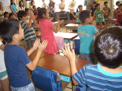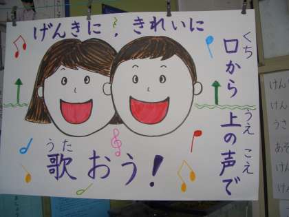 歌うめあてをわかりやすく、絵図にしたり、師範を担任が見せたり・・リズム打ちの工夫をしたり、子どもが取り組みやすいような工夫が調所に見られました。