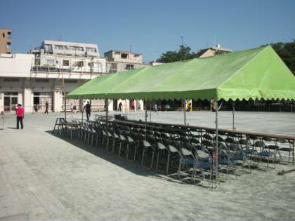 明日の運動会に向けて、今日の午後、5・6年生の子どもと準備をしました。九品仏商店会からは5名の方が駆けつけてくださいました。子どもたちの活躍が楽しみです。