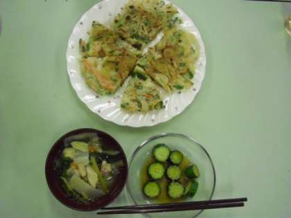 メニューは、トック・きゅうりの中華漬け・チヂミです。