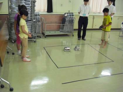 都立総合工科高等学校ロボット部のみなさんのご協力で、普段見ることや操作することのできないロボットの体験をすることができました。ロボットどうしの相撲もやりました。