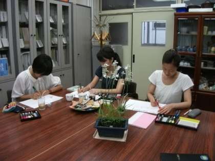 さぎそう学舎(八幡中・八幡小・九品仏小)の若手教員が集まり、7月22日・29日に九品仏小学校で研修会をもちました。学校を越えて互いが触発し合い有意義な研修となりました。写真はさぎそうの花を囲んで、課題に取り組んでいるところです。