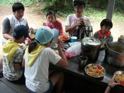 8月8日、恒例の青少年九品仏地区委員会のバスハイクが好天のもと実施されました。さぎそう学舎(八幡中・八幡小・九品仏)の希望者(小学校3年生以上)と地域の皆さん・PTA・教職員が2台のバスで横浜市こども自然公園に向かいました。園内では飯盒炊さん・オリエンテーリングで楽しいひとときを過ごしました。