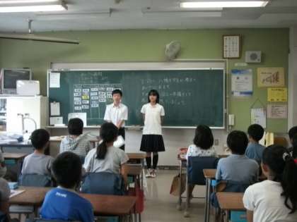 9月4日から3日間、八幡中学校の2年生が本校に職場体験に来ます。今日は2年生の学習補助や1年生の給食支援をしました。後日、本校の5年生の子どもたちに体験体験の話をしてくれることになっています。