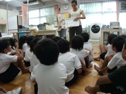 2学期の始まりに身長と体重をはかりました。測定の前には保健室の先生が健康についてのお話をします。