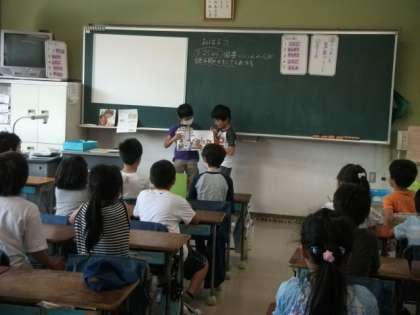 毎週金曜日の朝は読書タイムです。今日は図書委員会の子どもたちが各クラスで読み聞かせをしました。(写真は上から1年・2年・3年です)