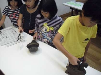 郷土資料館では昔の道具に触れることができ、よく見たり、重さを実感することができました。