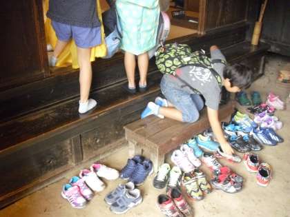 次大夫堀公園では、古民家の中に入り、囲炉裏の火を見ながら、昔の暮らしを感じられました。