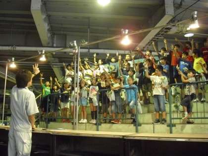 世田谷市場では、野菜、果物、花のクイズをしていただき、楽しく学習できました。青果のせりをする台に上がり、手の値段の表し方を教えていただきました。