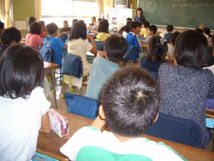 5年生の教室では、“物や公共施設”などを大切に使おう・・・ということを具体的に子どもたちが理解できるような分かりやすい話をしていました。みな真剣に聞いていました。