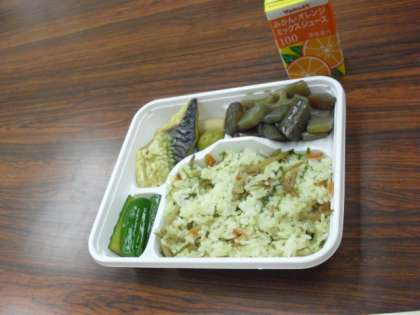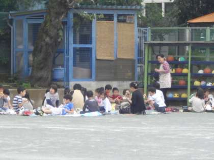 本日は気候もよい中、屋外でお弁当給食を食べました。