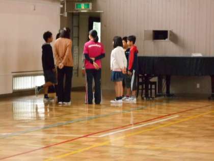 今朝の児童集会は、じゃんけん列車です。じゃんけんして負けた人が勝った人の後ろに付く単純なゲームですが、全校でやるととても盛り上がります。集会が終わったら、集会委員会の子どもは、毎回反省会をして、よかったところと改善点を確認しています。