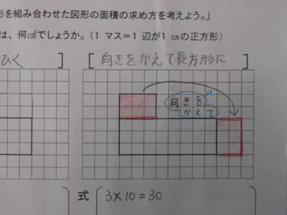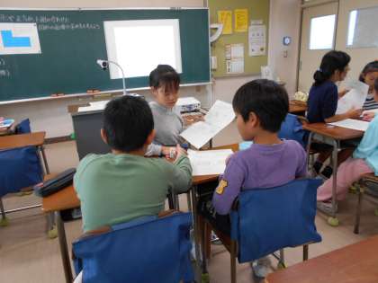 本校では3年生以上の算数は、1クラスを2つの教室に分けての指導をしています。今日は校内研究会で4年生の算数を全校の教員で参観して、その後、区の指導主事の先生にご指導をいただきながら研究協議をしました。今日の授業は面積で、2つのクラスとも子どもたちの発表で実物投影機を活用しました。