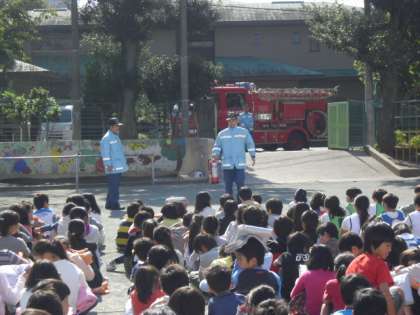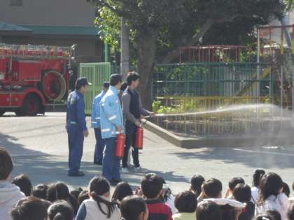 玉川消防署の方をお招きした避難訓練