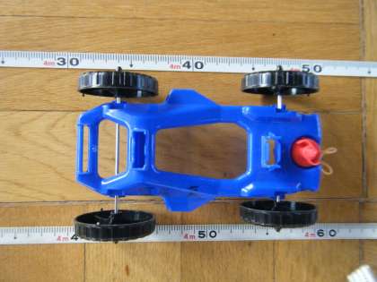 ゴムの伸びとゴムの本数を調べる条件にして、自動車を走らせました。