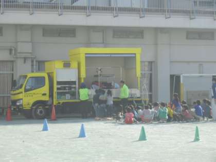 12月6日(金)の避難訓練で、3年生以上の全員が起震車体験をしました。強い揺れの中、しっかりと体を守る姿勢をとっていました。