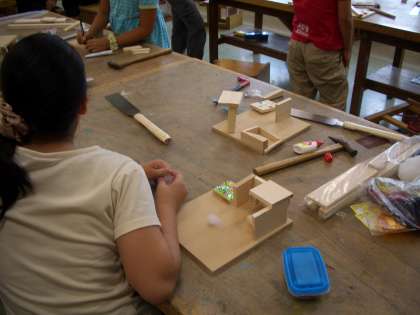 今日は、“木工作”、子どもたちのイメージする作品を作っていました。