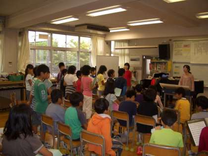 5年生の1時間目は、「音楽科」で合唱の練習。