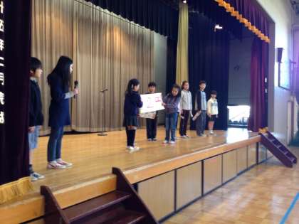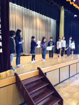 終業式では1年生が2学期のふりかえりと3学期の抱負を