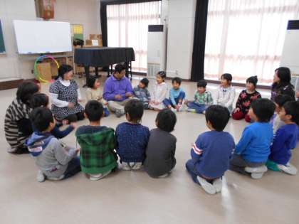 今月の1年生の読み聞かせは、講師の方を招いてのわらべうた体験です。わらべうたのもつあたたかい響きがうれしくなりました。