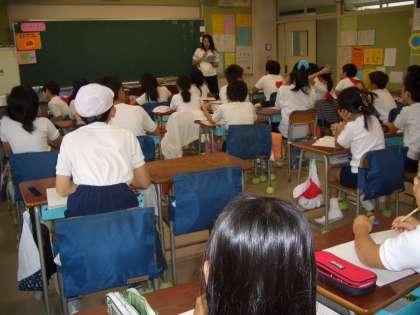 4年生の教室では、「国語科」“新し漢字”の意味と書き順などを学習していました。ノートの使い方も工夫されていました。