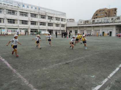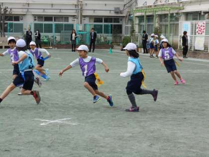 3年生は体育でタグラグビーに取り組んでいます。昨日の授業はよその学校の先生方も見にきました。作戦を考えてきびきび動く姿をほめていただきました。