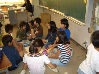 5年生の教室では、「音楽科」“飛べ ペガサス”という曲を聴いて・・・どうのようなイメージを浮かべたかなど・・・一人一人の感じをグル—プで話し合っていました。