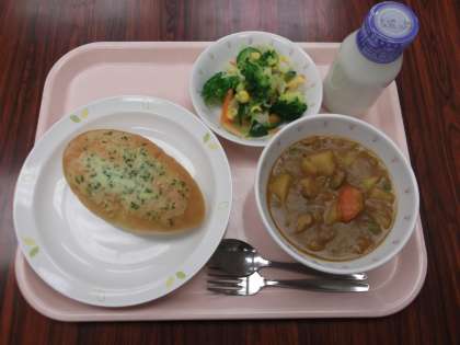 献立  ガーリックトースト  牛乳
