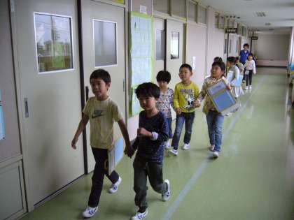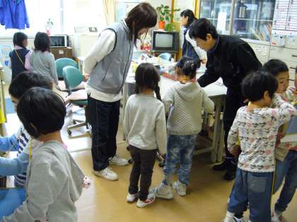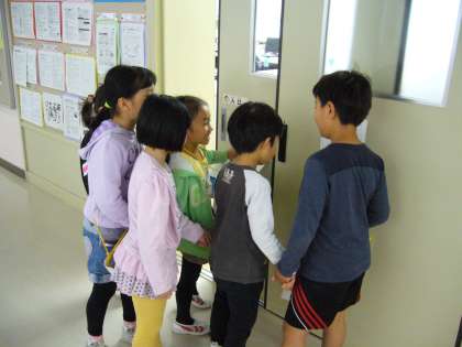 2年生が案内係になって学校たんけんをしました。2年生のお兄ちゃんお姉ちゃんは、1年生のペースに合わせながらわかりやすく丁寧に教えてあげていました。