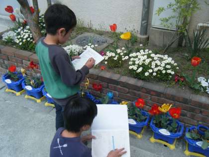 校内に咲いている花をたくさん見つけたり、じっくり観察したりしました。